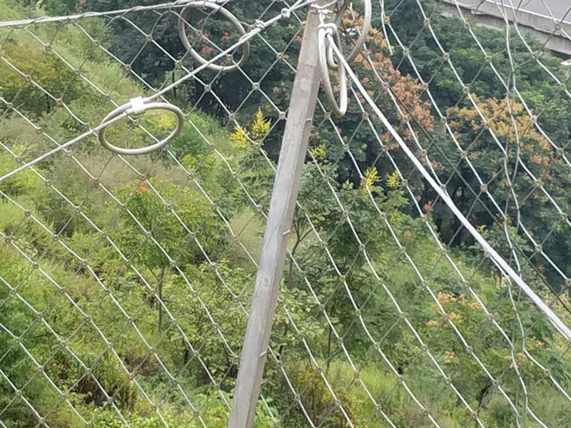 2. 每組被動(dòng)防護(hù)網(wǎng)上下都有兩個(gè)支撐繩將立柱與鋼絲繩網(wǎng)緊密的結(jié)合在一起,起到共同防護(hù)的效果,支撐繩的直徑一般為∮18,可以對(duì)落石進(jìn)行有效的攔截。
