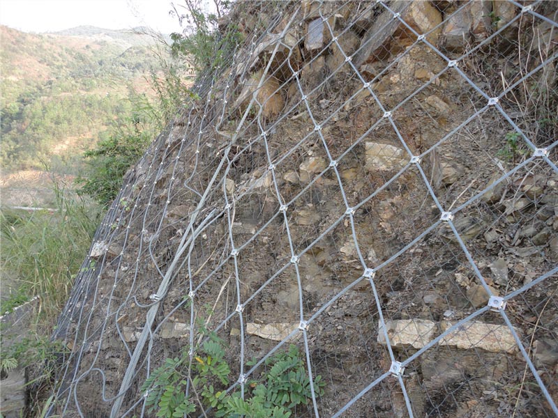 5. RX-075型被動(dòng)防護(hù)網(wǎng)采用熱鍍鋅鋼絲繩編織而成,其防腐效果非常好在戶外條件下使用壽命長(zhǎng)達(dá)50年。一般安裝在高速公路兩側(cè)、礦區(qū)、水庫(kù)、危險(xiǎn)邊坡等地方。